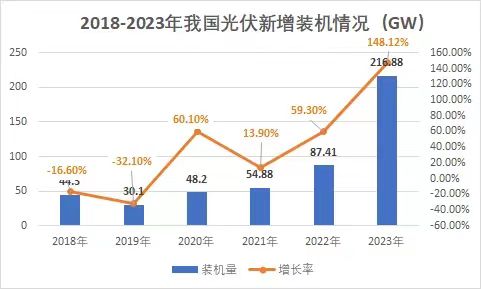 裝機(jī)量再度刷新!光伏市場持續(xù)火熱! 1月26日,國家能源局發(fā)布2023年全國電力工業(yè)統(tǒng)計(jì)數(shù)據(jù)。2023年1~12月光伏新增裝機(jī)216.88GW,同比增長148.12%。 去年,對(duì)于光伏行業(yè)來講是爆發(fā)式增